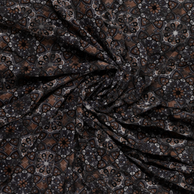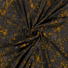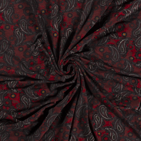 stretch tricot antraciet grijs wit paisley dessin met flock print